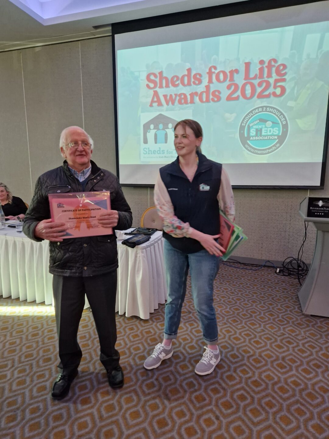 The Sheds for Life Awards, fondly known as the “Sheddies” were held in the River Park Hotel in Enniscorthy yesterday with shedders from all around Wexford taking part. We had a very enjoyable session with talks from Lisa Nangle of the HSE, Ben Hunt from Wexford Sports partnership and Peter McNulty of Age & Opportunity alongside Geraldine, Lorraine, Rebecca, Enda and Ben from IMSA.